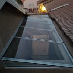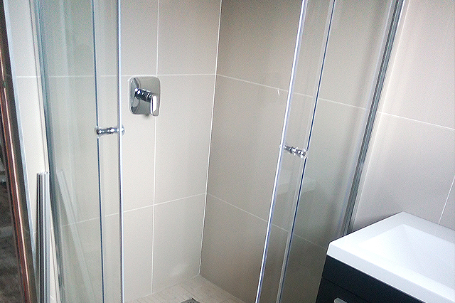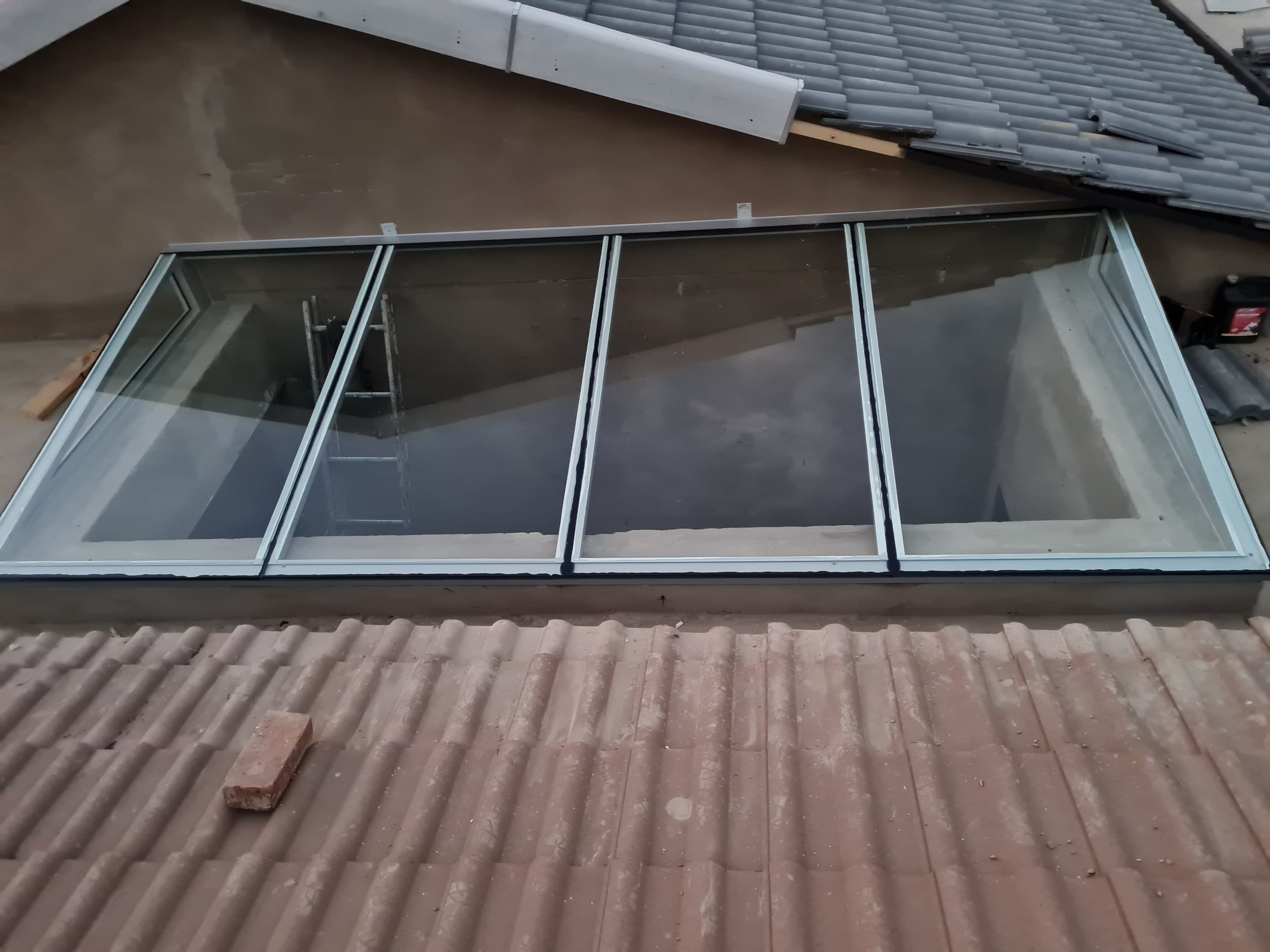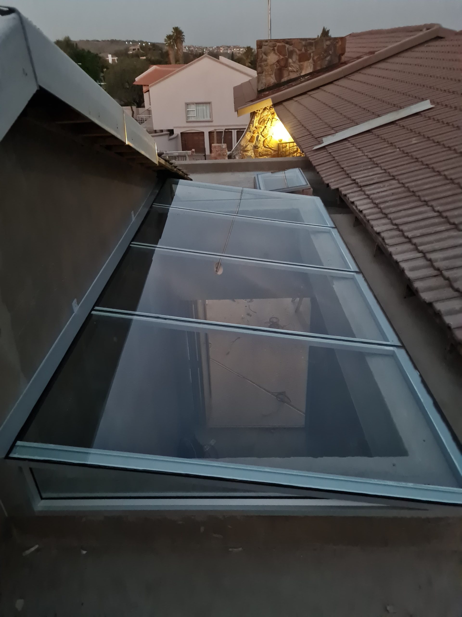 Aluminium skylights and frameless glass shower systems designed to maximise light and modern interior design.